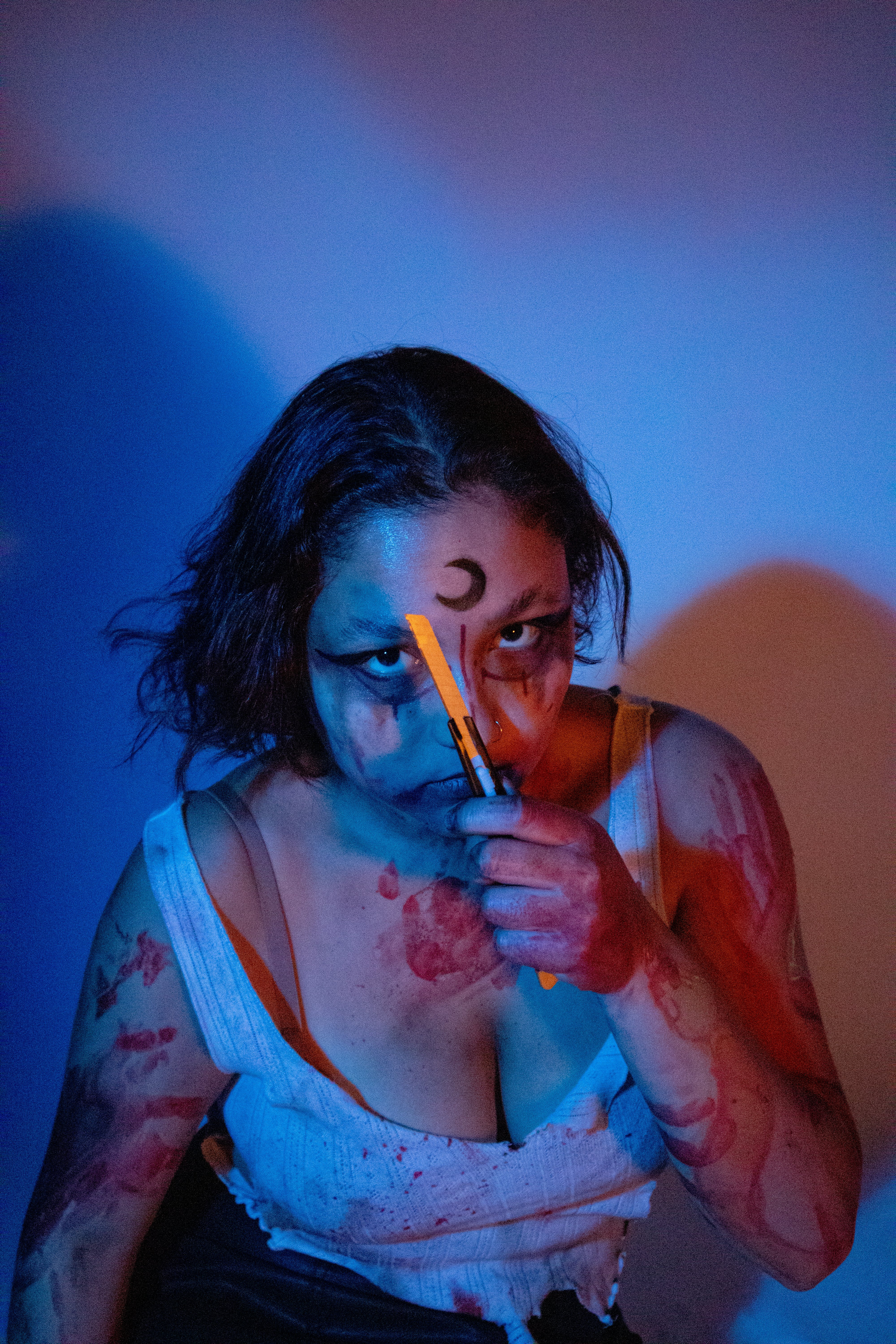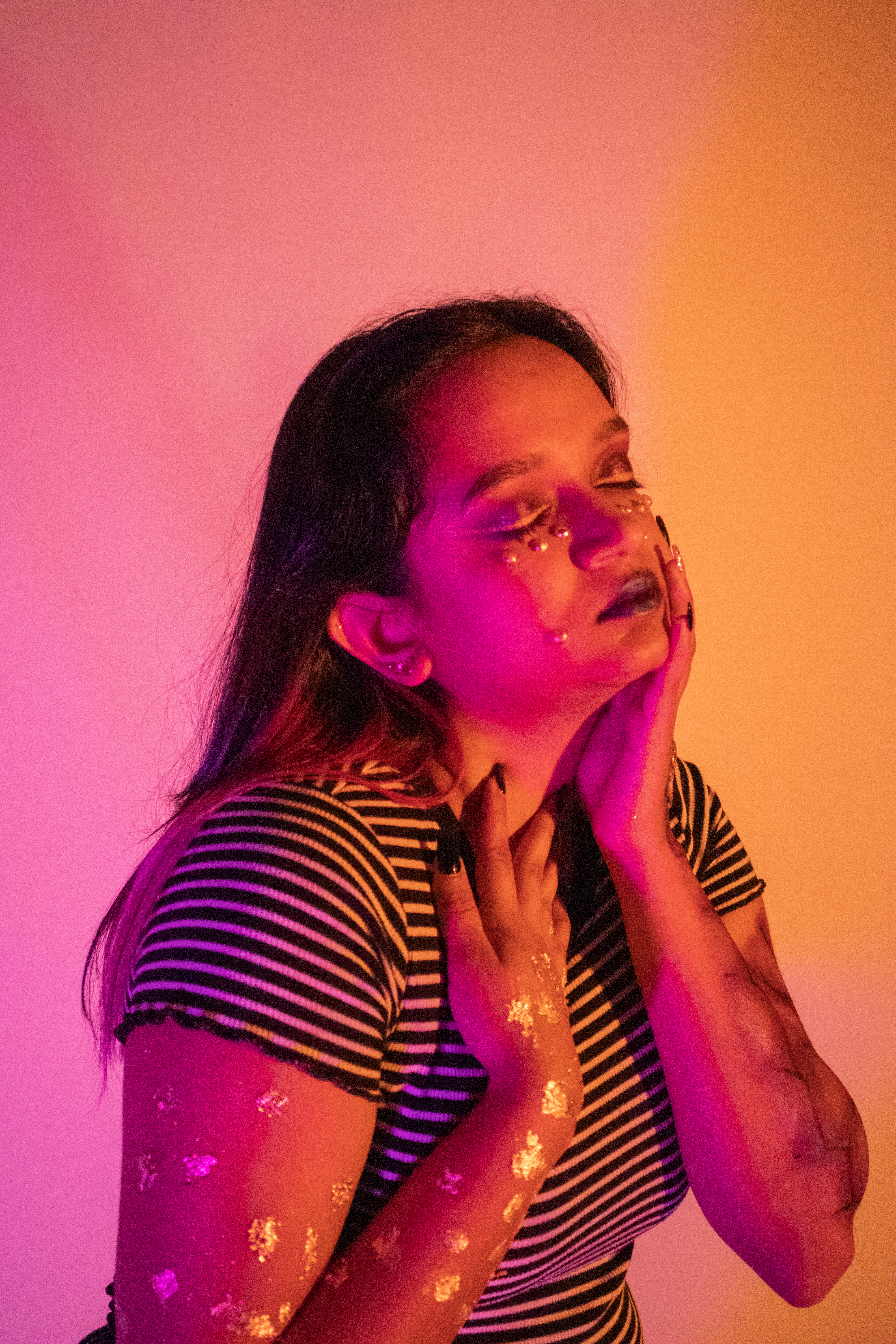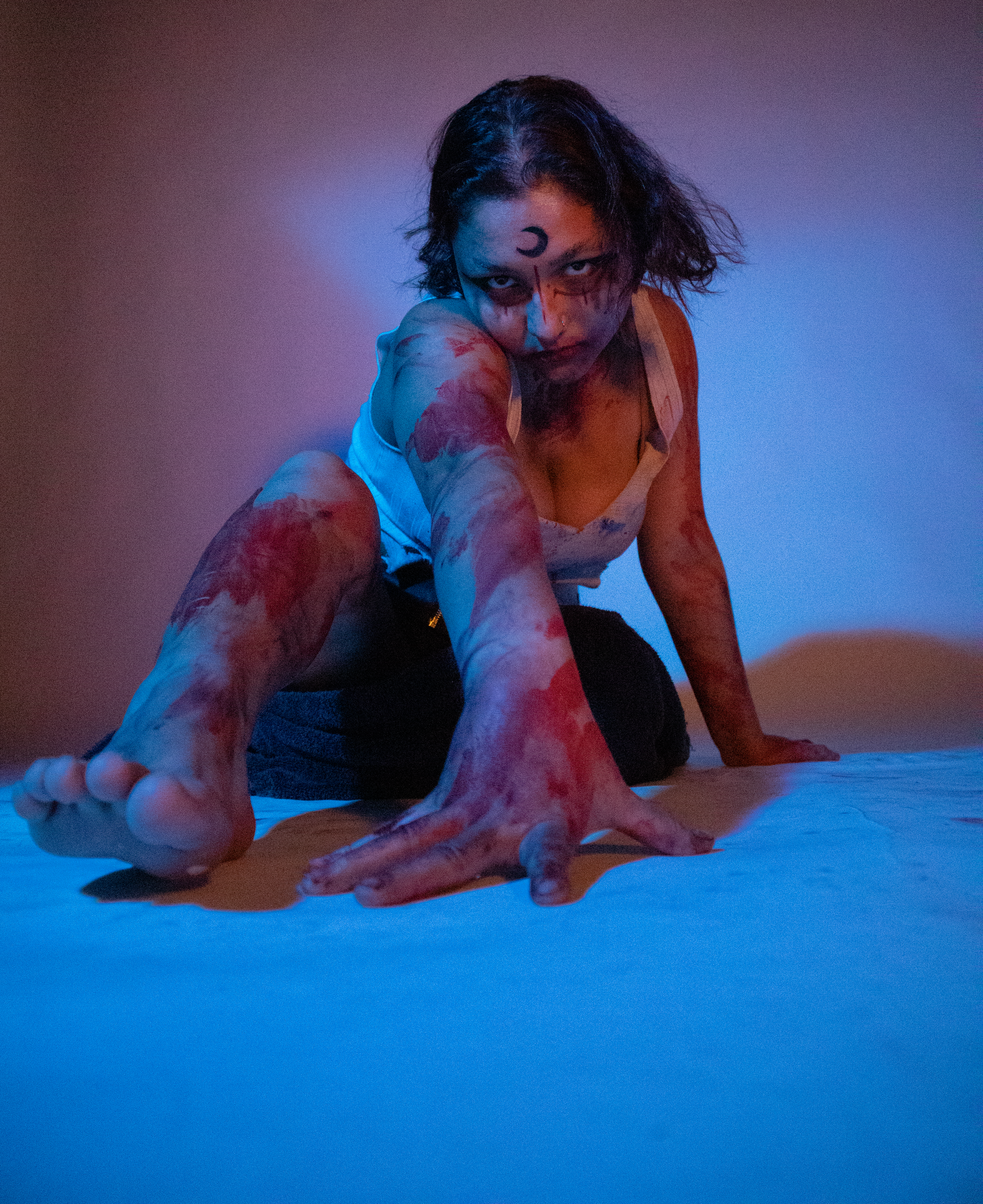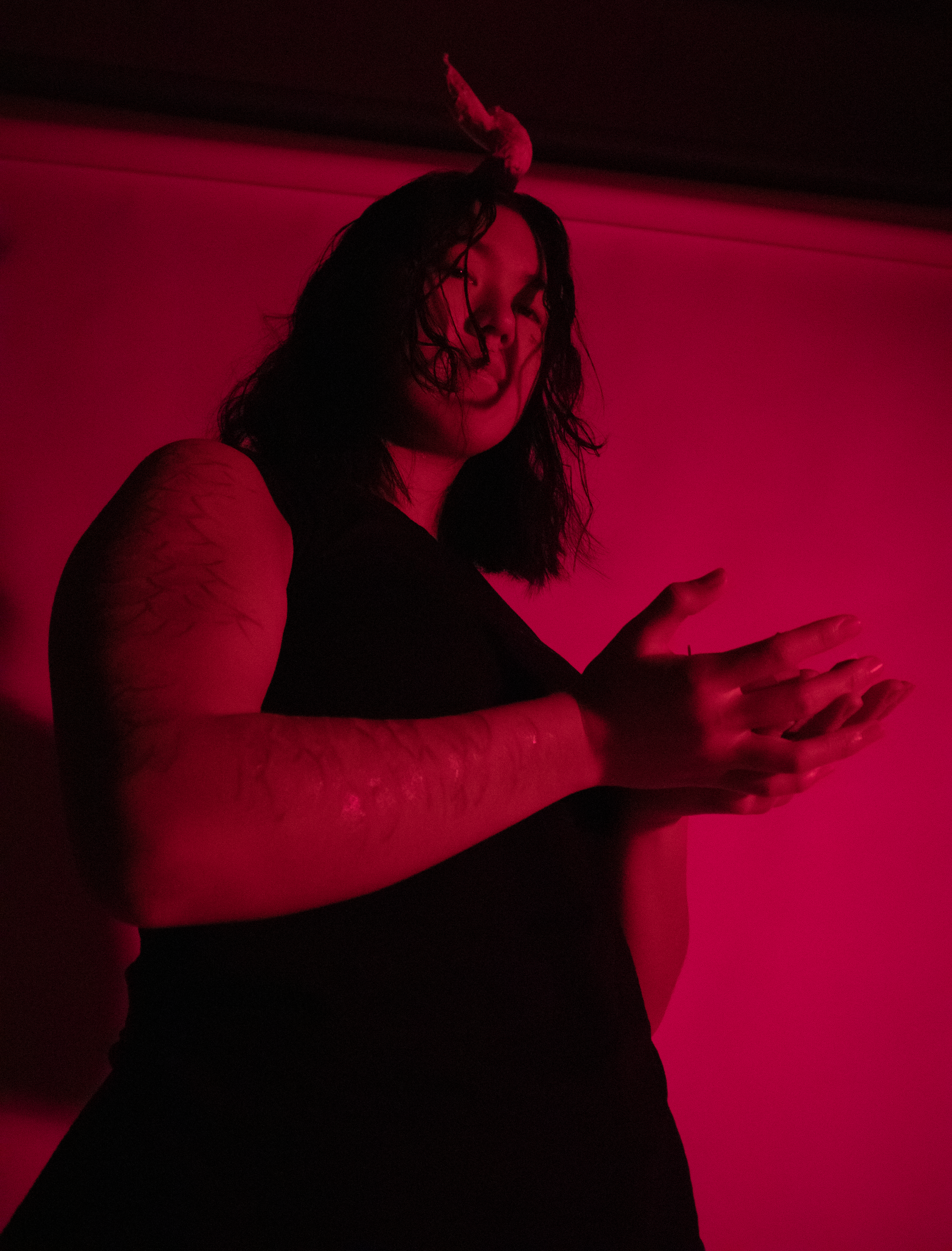 Using photography, this artwork explores a contemporary representation of powerful mythological figures through my under-represented models. My participants were asked to fill a questionnaire with information about their chosen figure, their church, a sacred object for their followers, a symbol, and primary colors for their icons. Each individual print represents one figure. 處染常淨 explores the tranquility and power of a Korean Kirin. Coven of the Emerald Moon portrays the vengeance of La Patasola. The Temple of Naagin describes the immortal existence of a Naagin. To investigate the iconography of religious institutions, I photographed my figures as if depicted within a rose window. Each image explores the narrative of these mythological figures. At a towering size of eight feet tall, the scale intends to confront and overwhelming the viewer in the presence of omnipotent non-white beings. My artwork forces the audience to acknowledge the lost histories, cultures and indigenous religious practices that I, and my participants, seek to restore.
